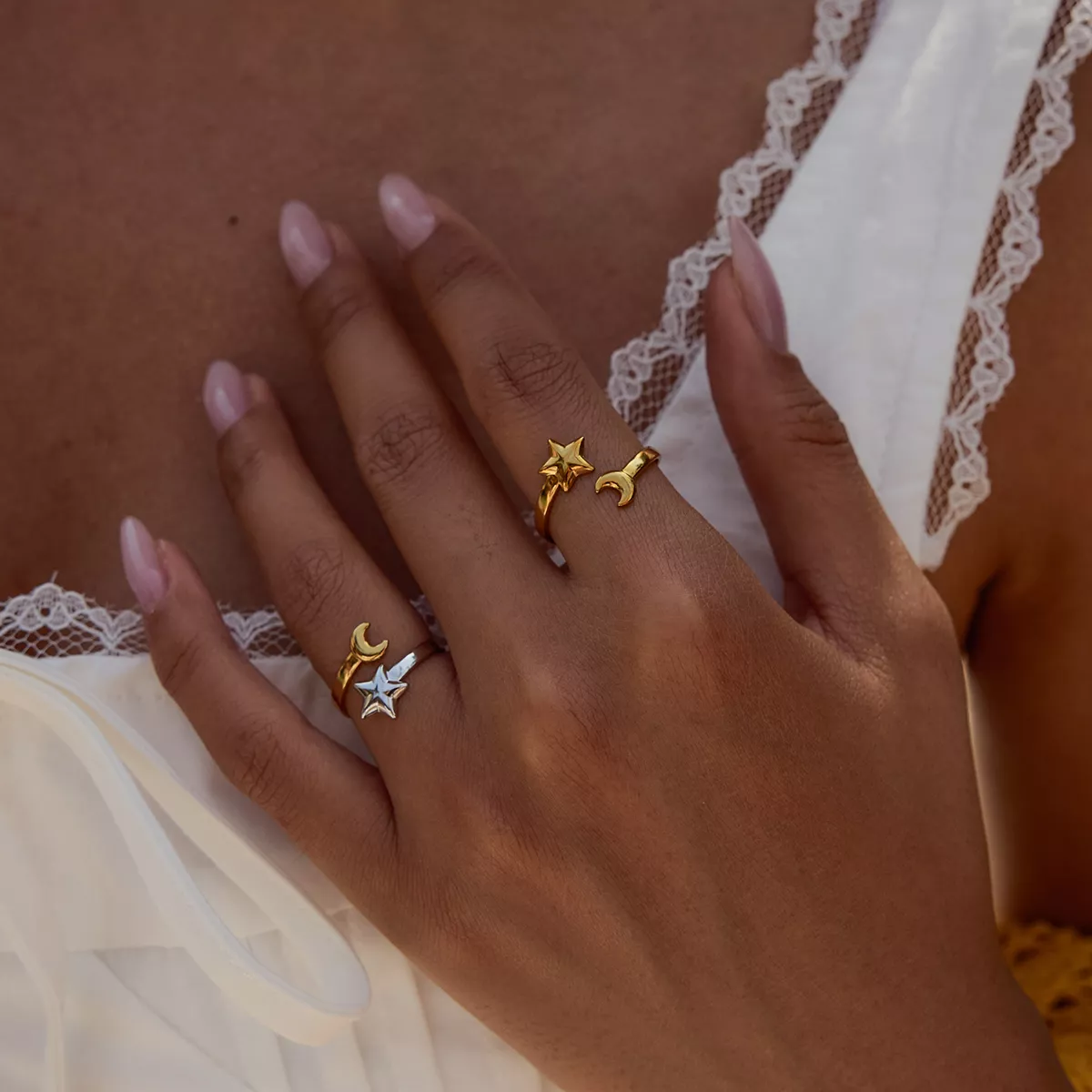 Turn everyday into something celestial. Add the 18K Gold Plated Star and Moon Open Ring to your jewelry collection today and let your fingers tell a story of charm, style, and strength. It’s time to shine—just like the stars you were made from.
