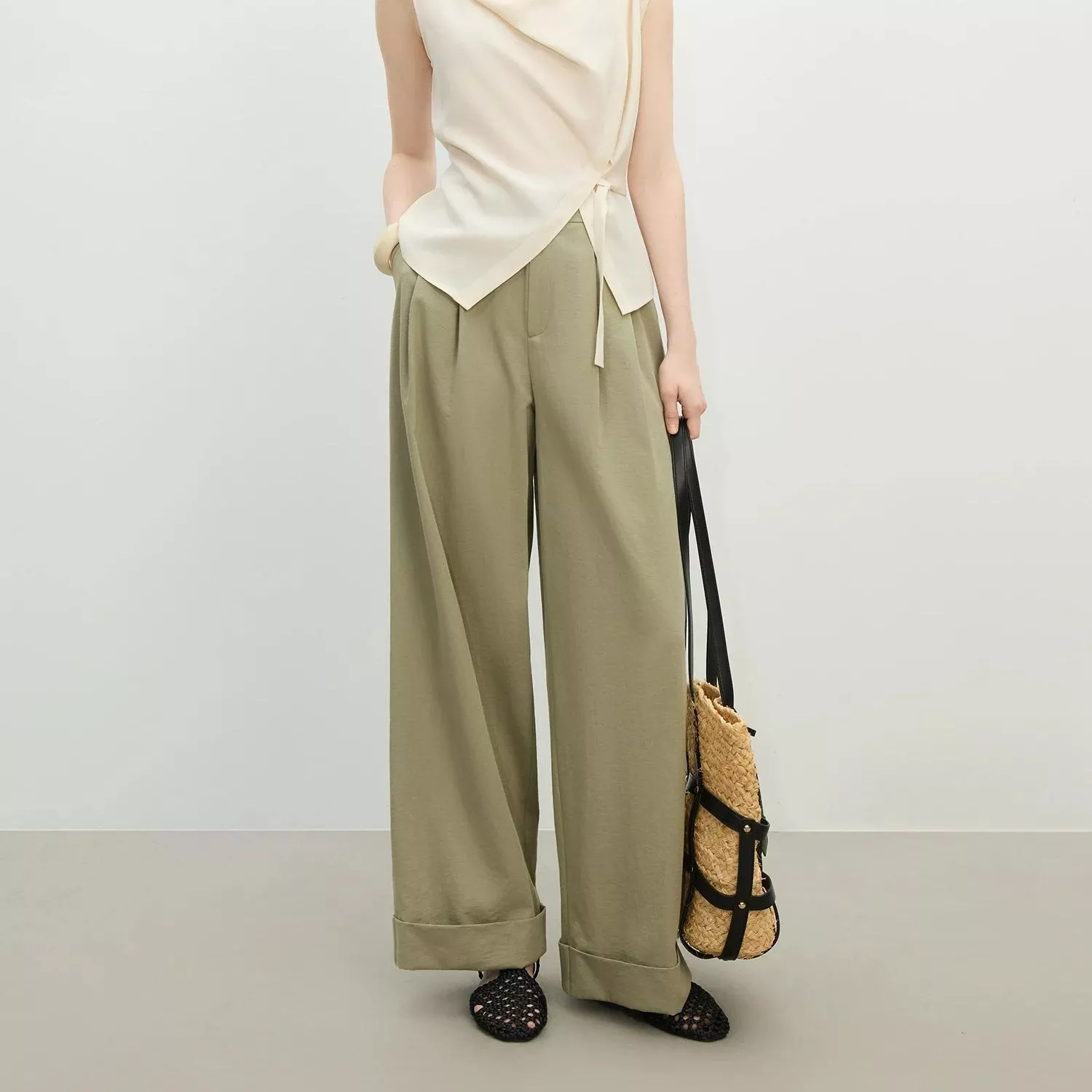 Whether you’re headed to the office, meeting friends, or enjoying a stroll in the city, these straight-leg drape pants are the perfect companion. Their minimal, solid-color finish means they pair effortlessly with everything from flowy blouses to crisp button-downs. This wardrobe essential proves that simple design, when done right, is anything but basic.