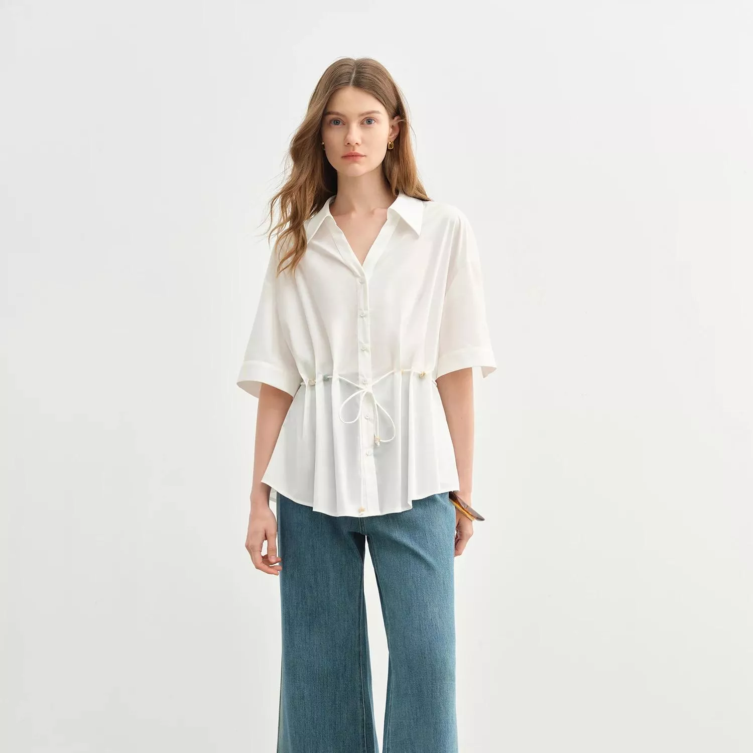 This shirt is best worn during spring and summer when breathable and stylish clothing is key. It stands out with its tasteful blend of details—from the intricate beadwork to the gently pinched pleats—making it anything but ordinary. Whether you’re running errands, meeting friends for brunch, or heading to a casual office setting, this top keeps you comfortable and looking effortlessly chic.