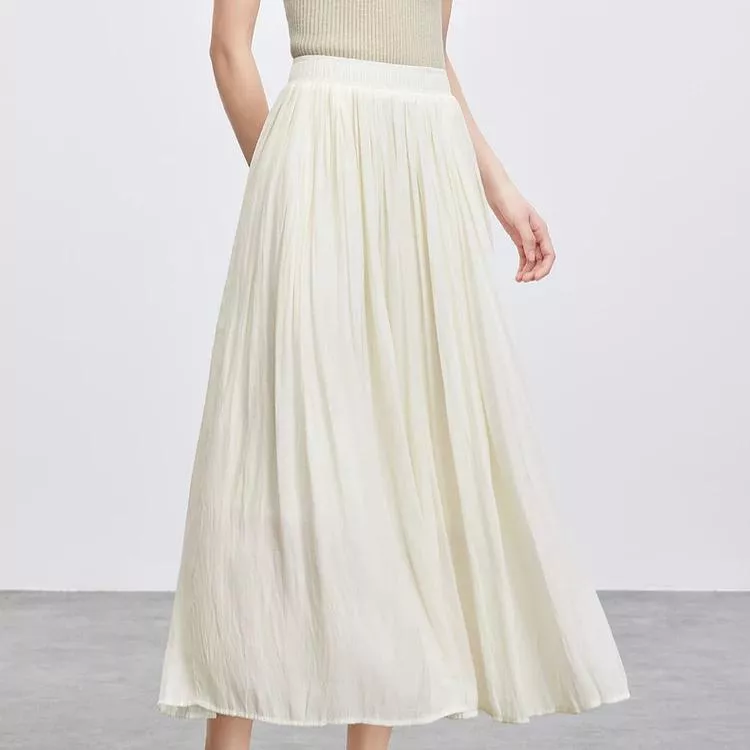 Crafted from a high-quality polyester blend, this skirt is lightweight, breathable, and ideal for warmer weather. The elastic waistband offers a flexible fit that hugs your waist comfortably without feeling tight. Its mid-calf length strikes the perfect balance between modesty and style, while the swing hem adds a playful, feminine flair. Simple yet refined, the solid color makes it easy to pair with blouses, camis, or light sweaters.