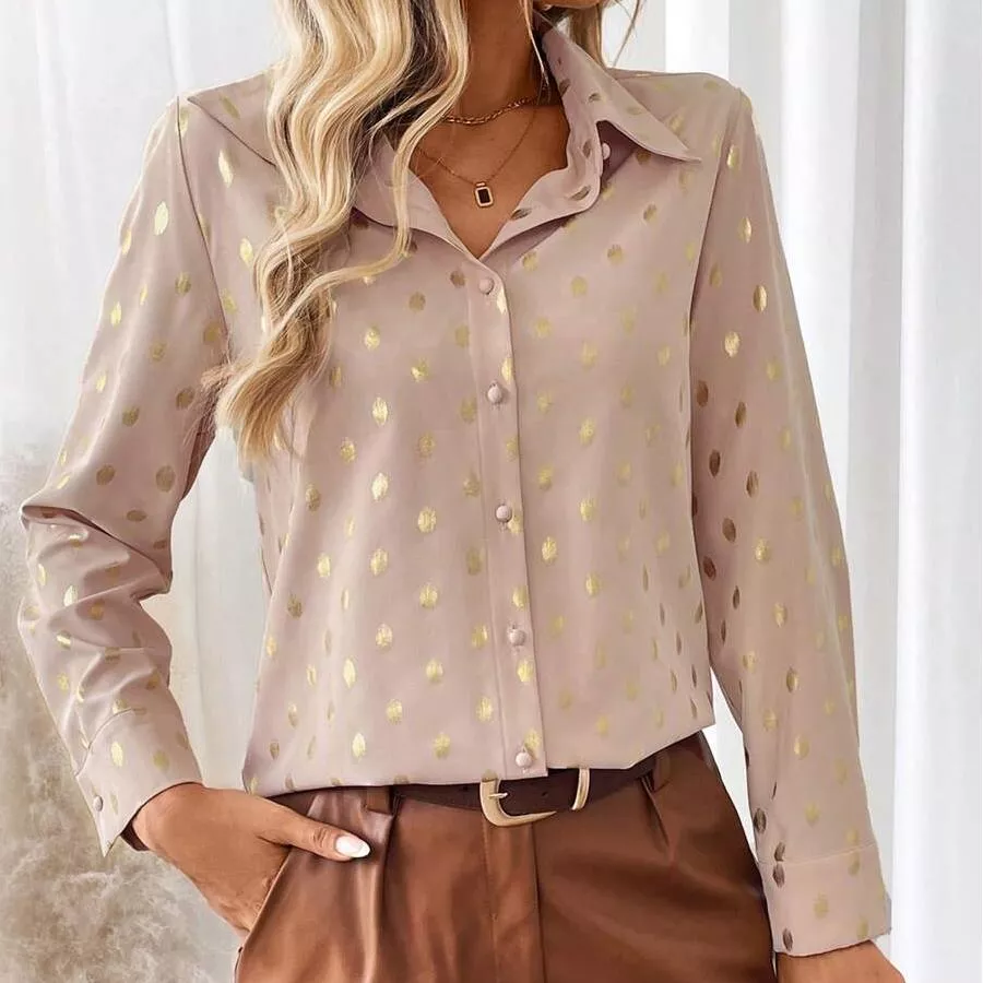 Elevate your everyday wardrobe with our Elegant Polka Dot Long Sleeve Blouse, the perfect blend of vintage charm and modern sophistication. Designed for the woman who values style, comfort, and versatility, this button-up blouse brings effortless elegance to your daily look. With a timeless polka dot print, soft polyester fabric, and a relaxed yet polished fit, this blouse is your go-to choice for both office wear and casual outings.