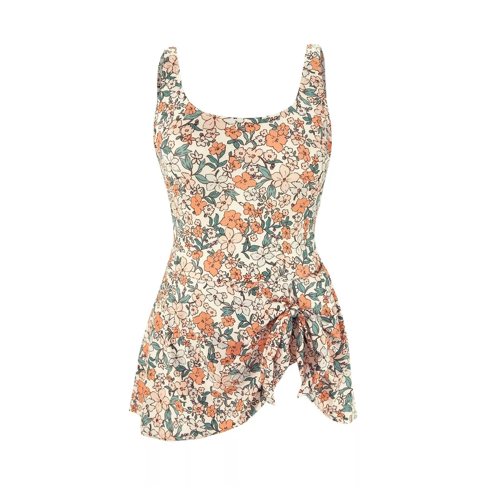 Floral Square Neck Swim Dress One-Piece Swimsuit with Adjustable Straps