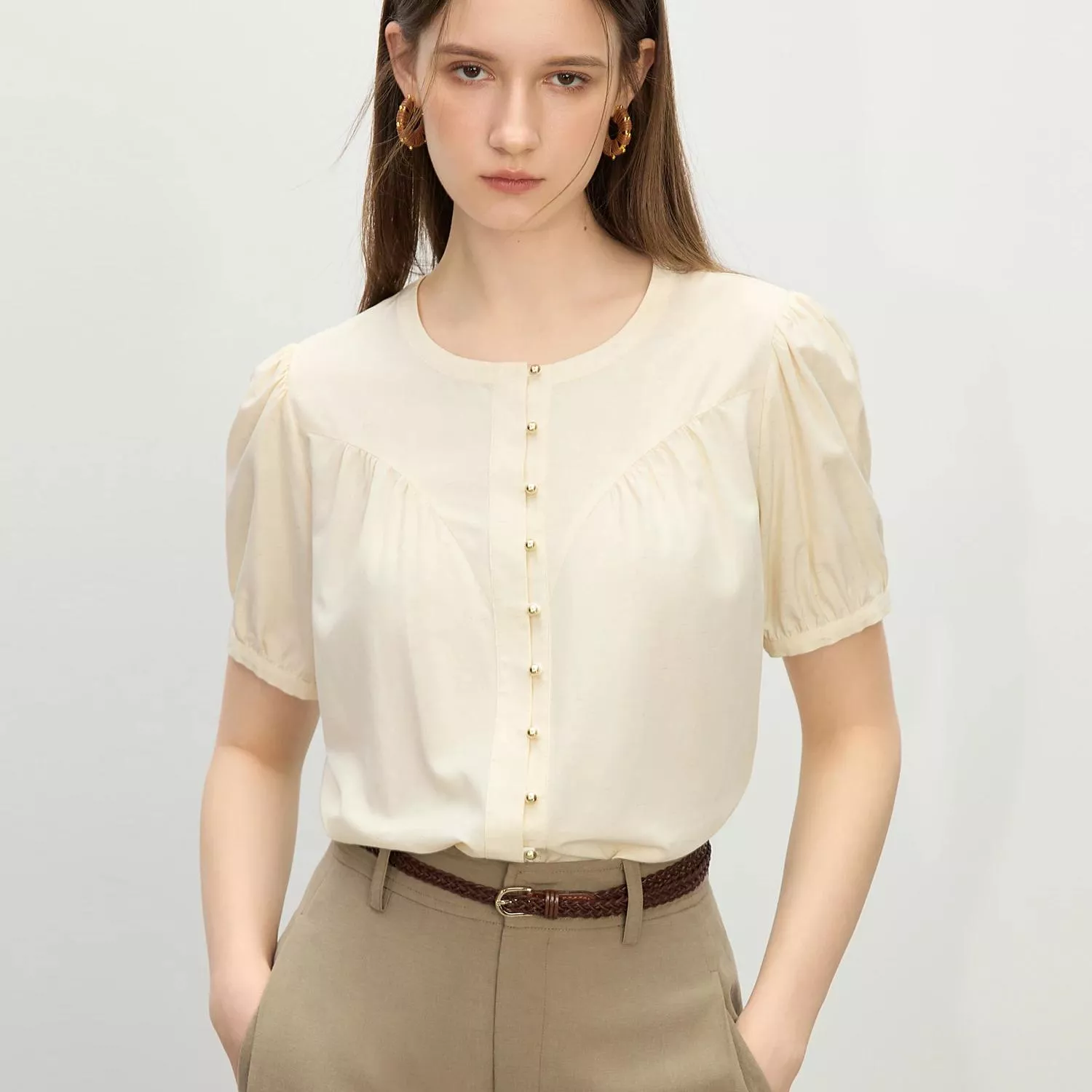 French-Inspired Round Neck Casual Short Sleeve Shirt