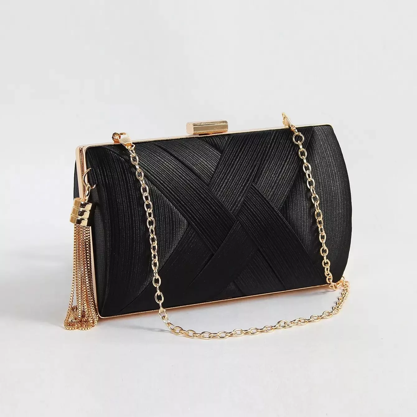Made with high-quality polyester, this evening bag is not only stylish but also durable. The unique minaudiere shape gives it a luxurious, structured look, while the fringed detailing adds movement and texture to your ensemble. The bag is equipped with a versatile chain strap, which allows you to carry it as a crossbody or over the shoulder, offering you flexibility in how you wear it. The spacious interior provides enough room for your essentials, like your phone, lipstick, and cards, without compromising on the sleek design.
