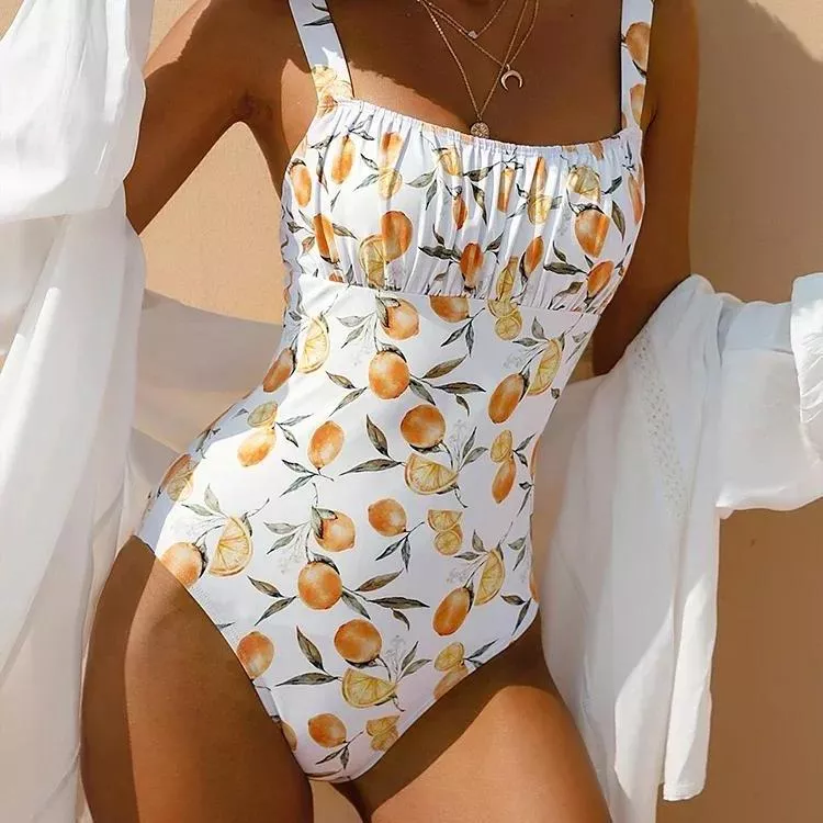 • Chic Design: Eye-catching fruit print with a trendy bandeau neckline