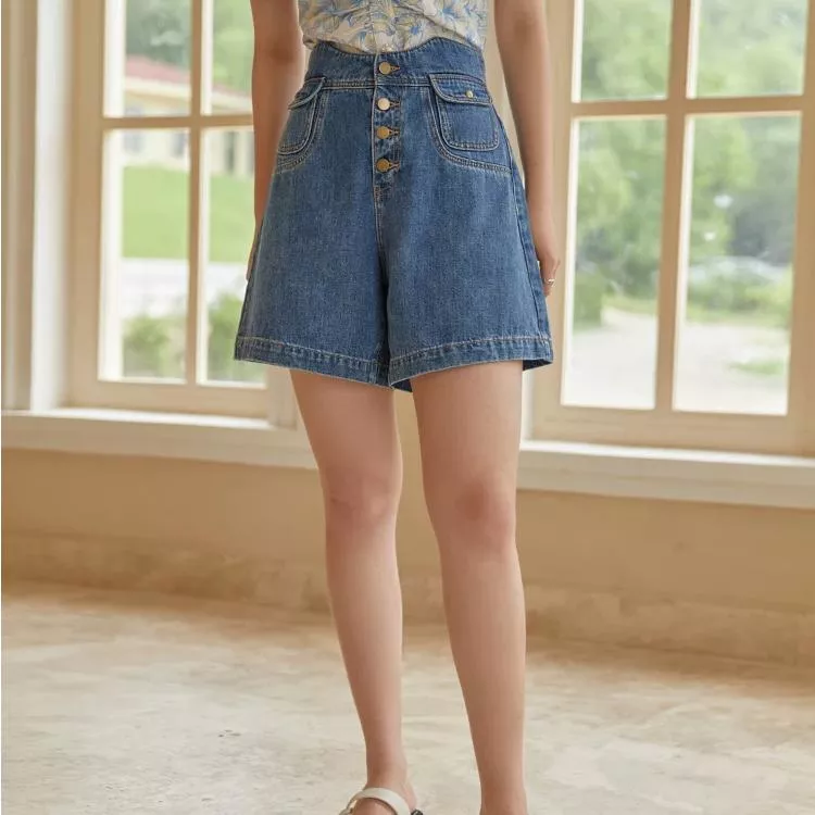 High Waist Cotton Denim Shorts for Women