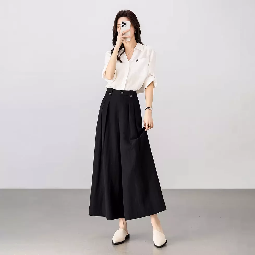 These wide leg pants are best worn during summer when you want to stay cool without sacrificing style. The clean, solid color palette pairs effortlessly with blouses, tanks, or tailored jackets. Their versatility and timeless design make them a must-have for your warm-weather wardrobe.