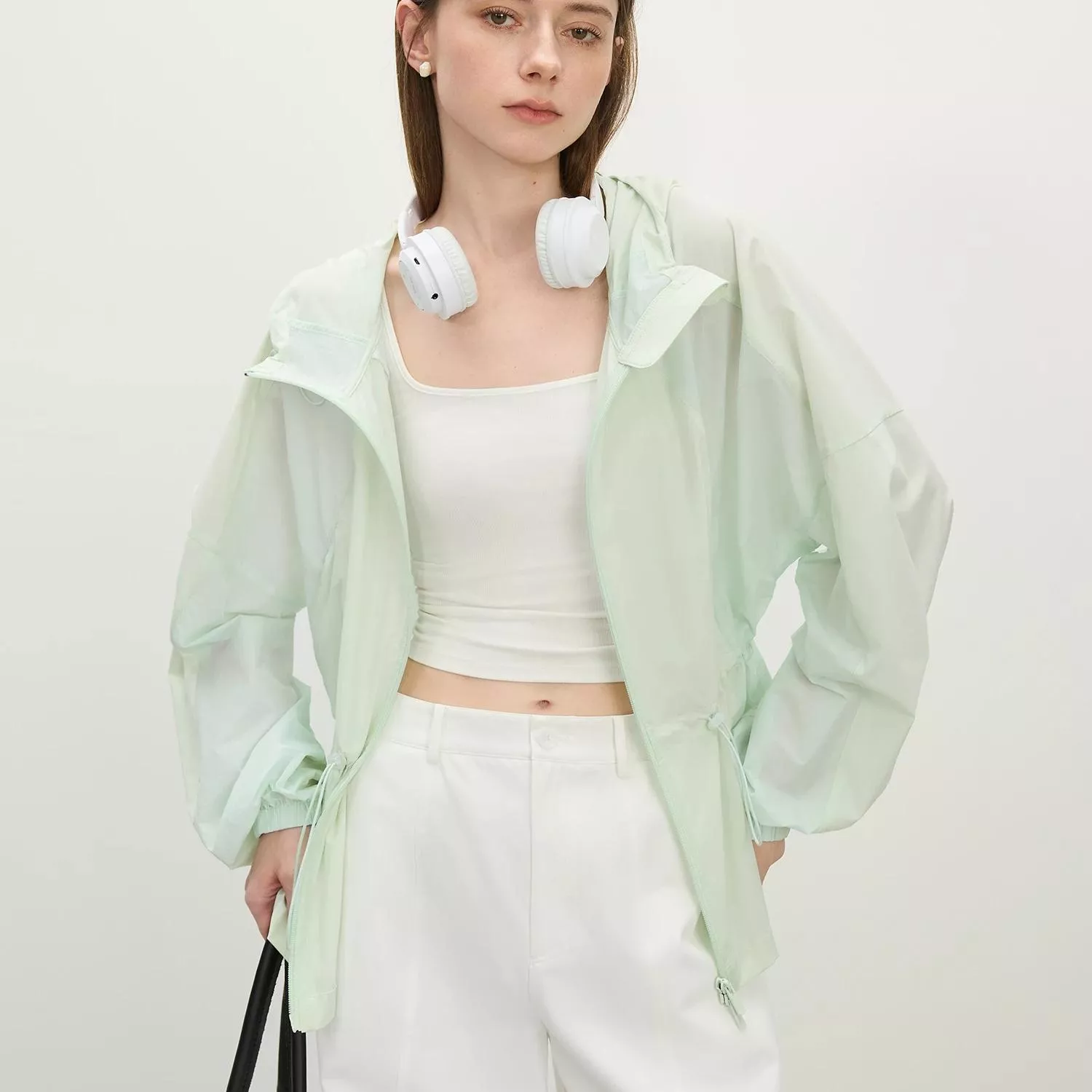 Crafted from a breathable blend of polyamide and spandex, the fabric is silky smooth, feather-light, and stretches just enough to move with you. The full-zip front and relaxed loose fit make it easy to throw on over a tank top or tee, while the attached hood offers added protection from the elements. With a sleek, minimalist design and solid color pattern, it’s the perfect outerwear to match any casual outfit.