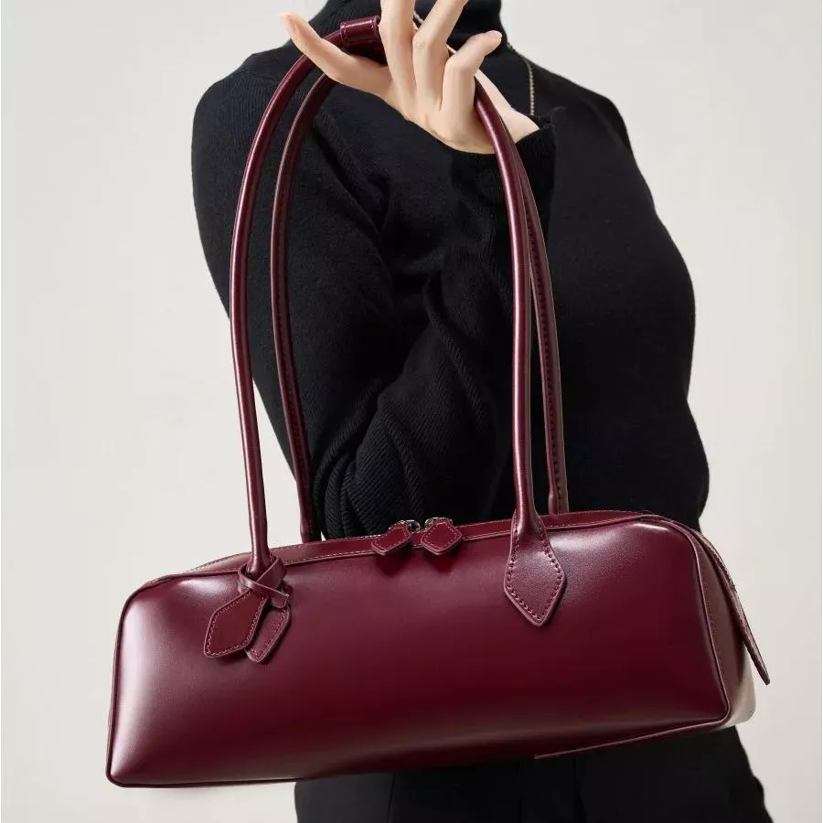 Luxury Genuine Leather Women’s Shoulder Baguette Bag – Soft Cowhide Handbag