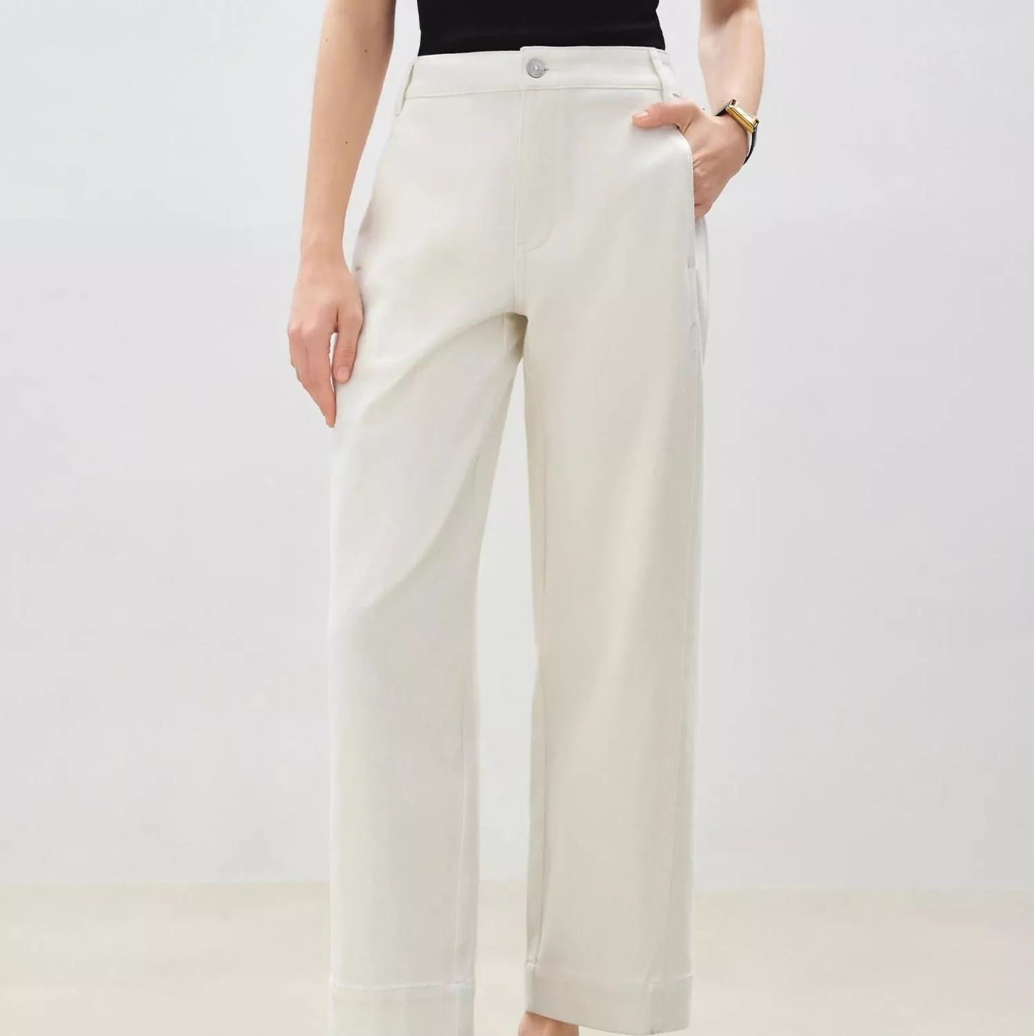 Crafted from a breathable blend of cotton, polyester, and spandex, this pair delivers the perfect balance of structure and stretch. The slim upper fit flows into a relaxed lower leg, creating that iconic ‘banana’ shape. The light-wash finish and high waist create a lengthening effect—ideal for pairing with crop tops or tucked-in tees.