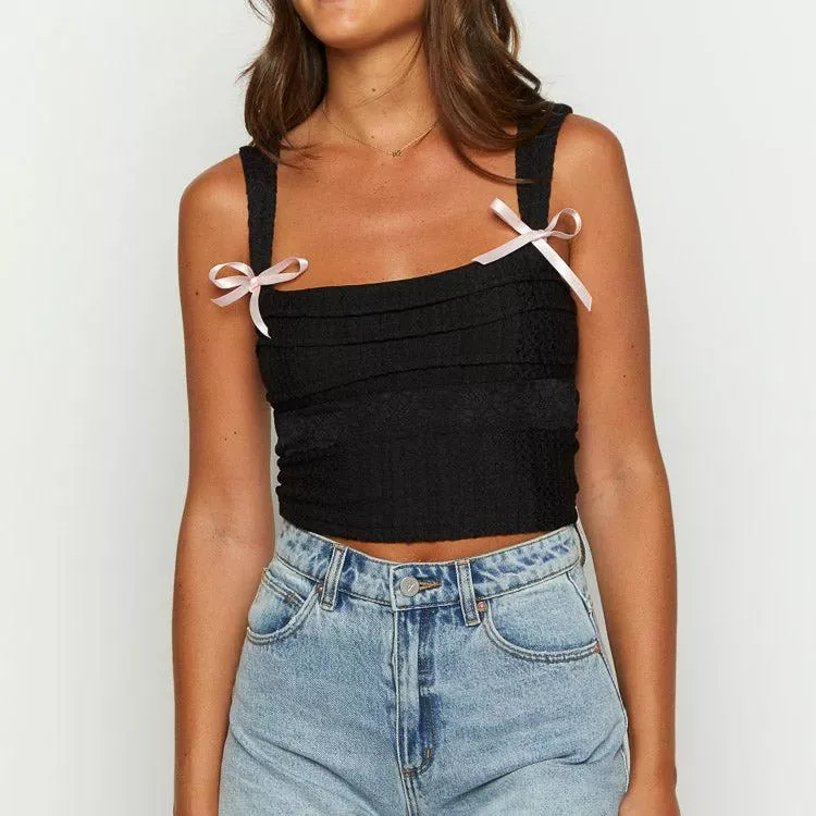 Get ready to elevate your summer style with this stunning Sleeveless Square Neck Camisole Top. Designed for those nights when you want to stand out, this ultra-chic mini vest is your go-to piece for parties, clubbing, and late-night adventures. With its flattering square neckline, open back, and playful bow tie-up design, this top brings together elegance and allure in one unforgettable look.