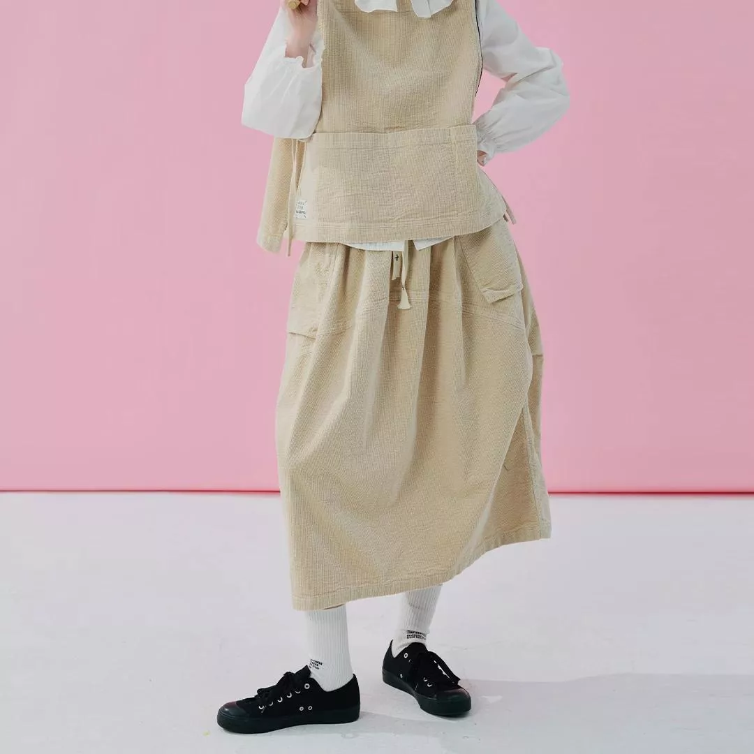 What sets this skirt apart is its unique lantern silhouette and the soft, washed corduroy texture that adds a gentle touch of structure without feeling stiff. It’s casual, yet quietly refined—an easy go-to piece you’ll reach for again and again. Whether paired with sandals, sneakers, or ankle boots, this skirt adds an effortless elegance to any look.