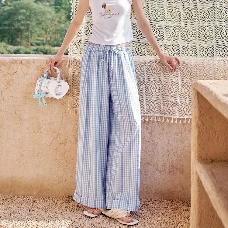 Summer Checkered Loose Wide Leg Casual Pants for Women
