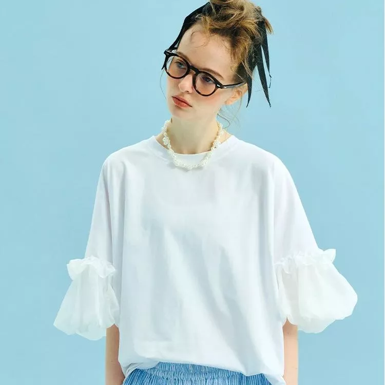 Designed with drop shoulders and half-length lantern sleeves, it offers a flattering shape and an airy feel that’s perfect for warmer days. The subtle stretch in the fabric ensures you can move freely while staying cool and relaxed. Whether you’re heading out for a casual brunch, a walk in the park, or a creative gathering with friends, this top will quickly become your go-to favorite.