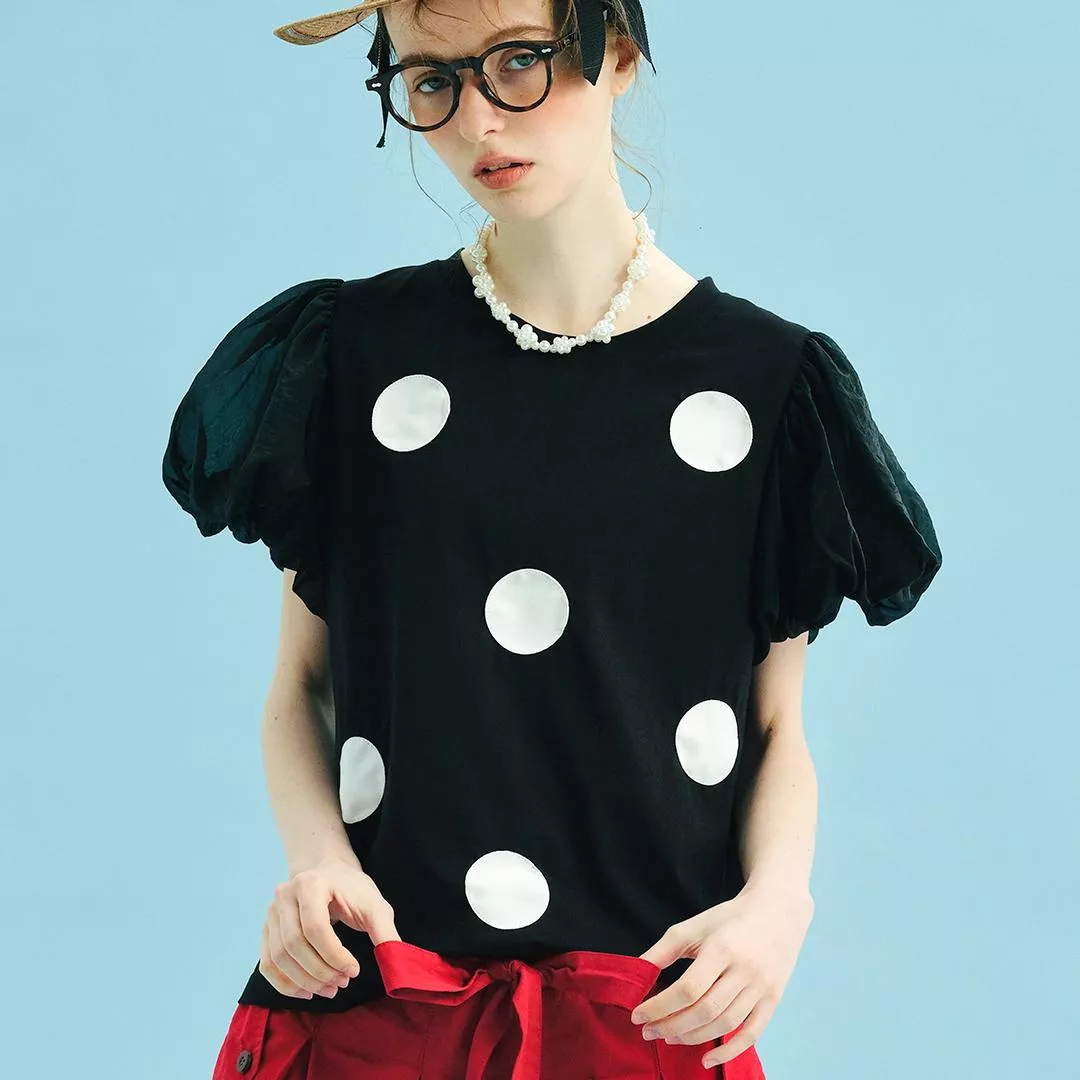Step into summer with effortless style in this charming polka dot mesh lantern sleeve tee. Designed to bring together comfort and trend-forward fashion, this top is your go-to choice for warm-weather commutes, casual outings, or a relaxed day at home. With its round neckline and soft cotton-spandex blend, it offers a light, breathable feel that keeps you fresh all day long. The playful puff sleeves and delicate mesh detail add a whimsical touch, making it more than just your average T-shirt.