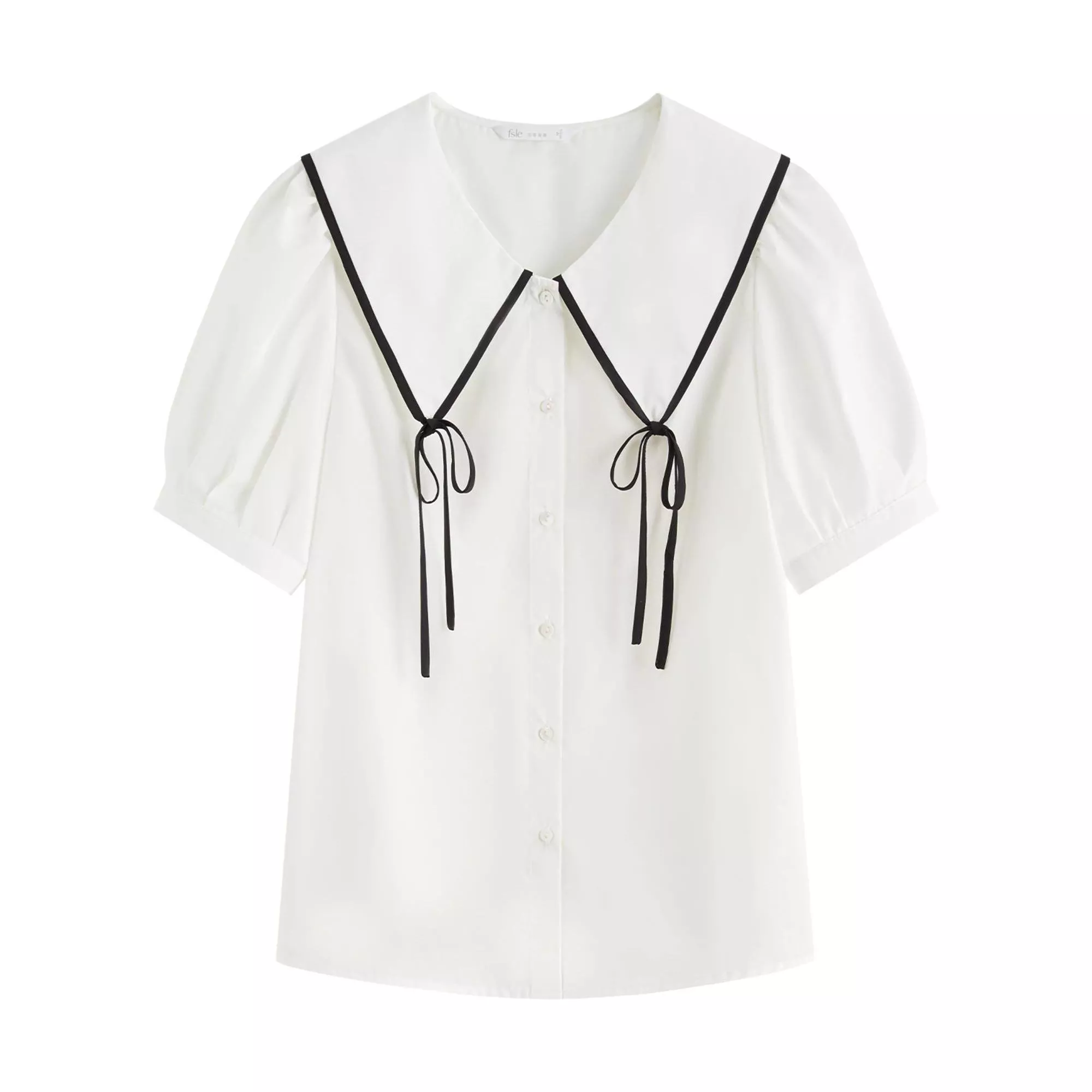 Sweet Peter Pan Collar Bow Blouse – Summer Short Sleeve Pullover Top