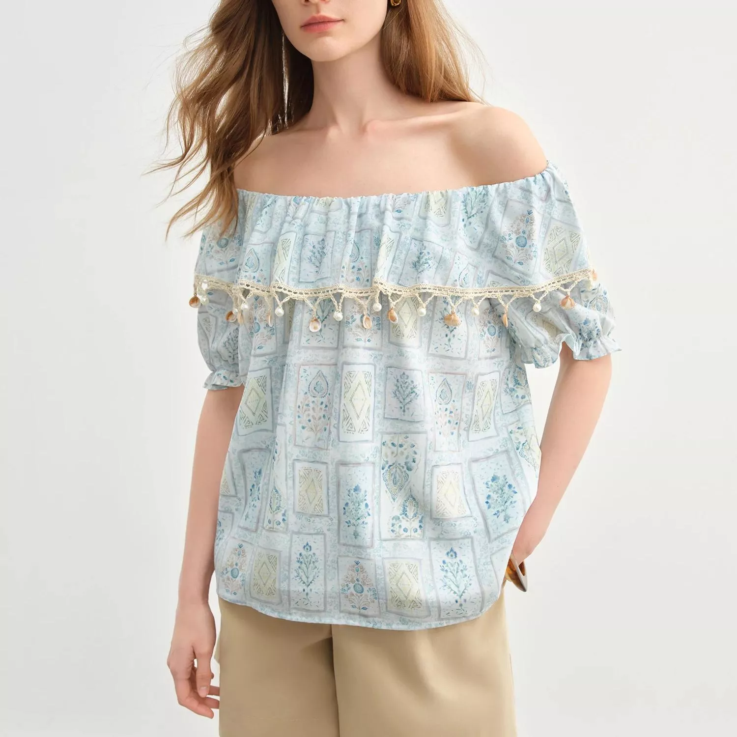 Make every summer moment sweeter with this dreamy two-wear puff sleeve blouse. Designed for sunny escapes and everyday adventures, this blouse blends a romantic silhouette with a carefree, casual style. Featuring a soft printed design and a flattering slash neckline, it’s a go-to piece for warm-weather days where comfort meets elegance. Whether you’re sipping iced coffee on a patio or wandering through a weekend market, this blouse brings a playful charm that feels just right.