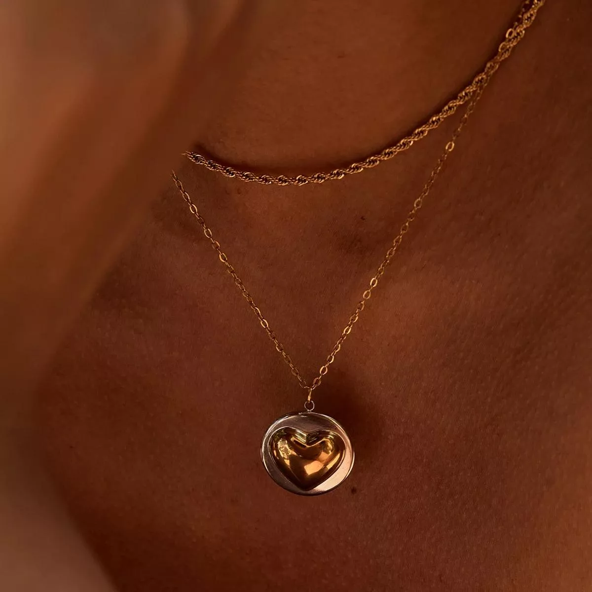 • Two-tone heart pendant – combines gold and silver tones for versatile styling