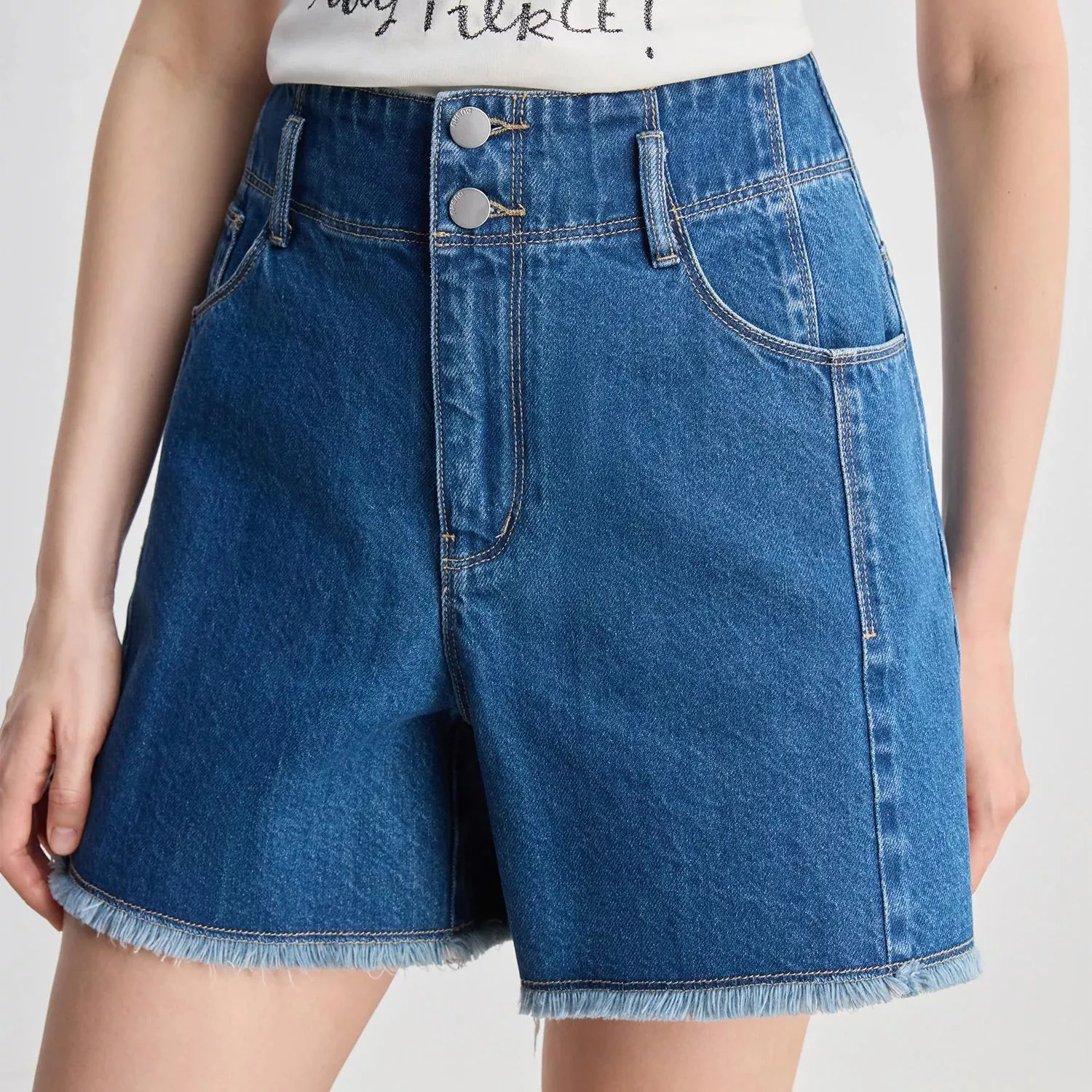 Step into effortless summer fashion with these curve-flattering artistic denim shorts, designed to combine structure with a touch of whimsy. Crafted from 100% cotton, these high-waisted shorts feature an asymmetrical panel design and raw edge hem for a bold, creative flair. Whether you’re styling a casual day look or adding an artistic edge to your weekend outfit, these denim shorts offer the perfect blend of comfort and character.