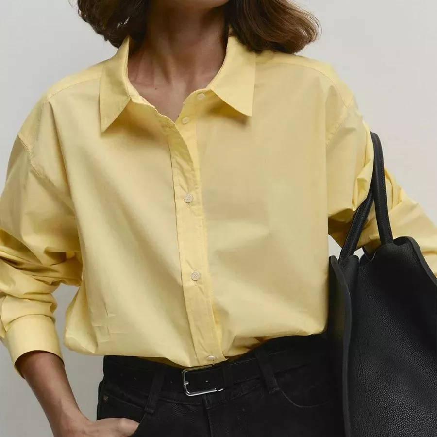The solid color and minimalist design make it easy to pair with everything from tailored trousers to jeans or skirts. With no added decorations or distractions, this shirt is all about simple sophistication—an ideal choice for women who appreciate clean lines and elevated basics.