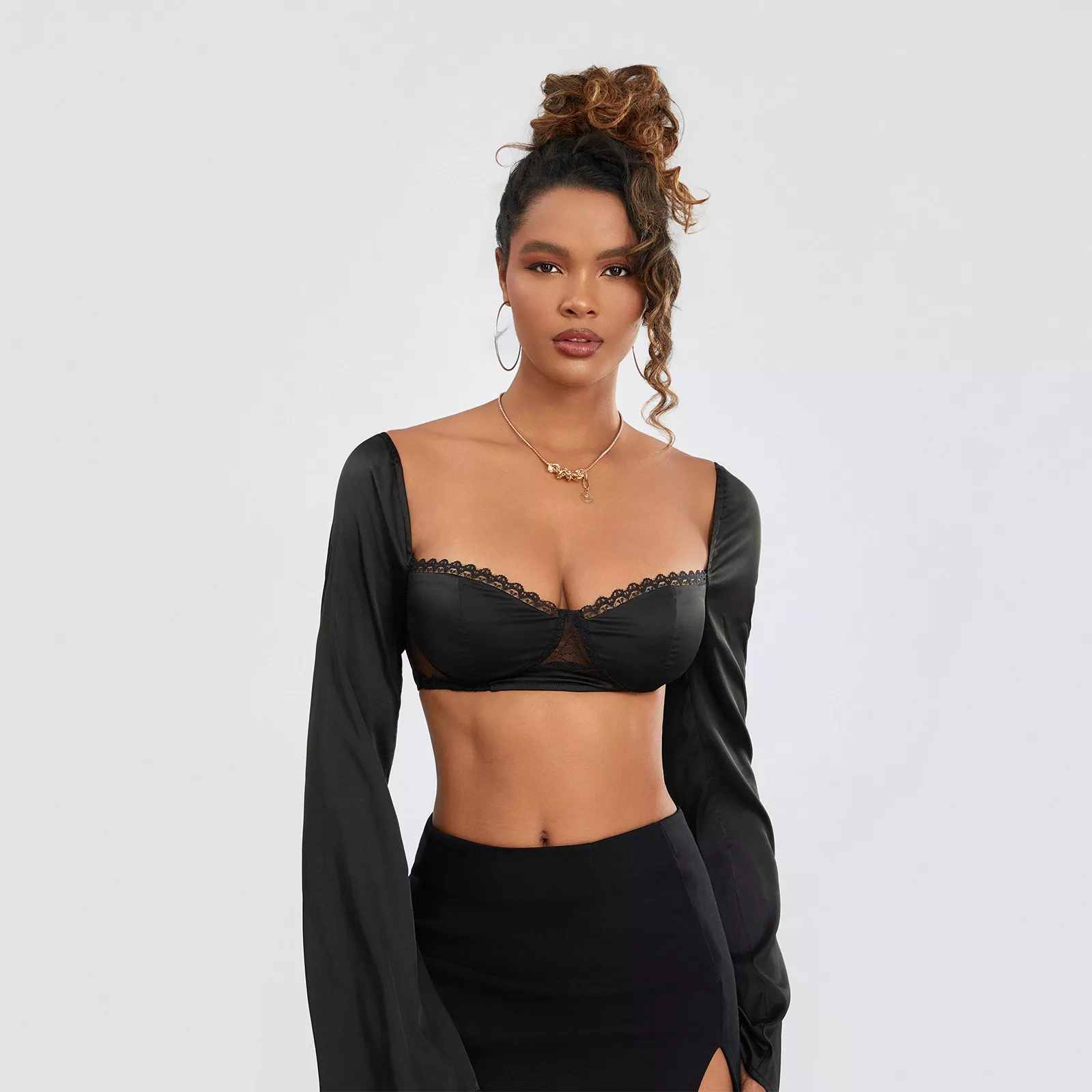 Ready to upgrade your wardrobe? Add this long sleeve lace-trim crop top to your cart and feel the confidence of fashion that fits, flatters, and turns heads wherever you go.
