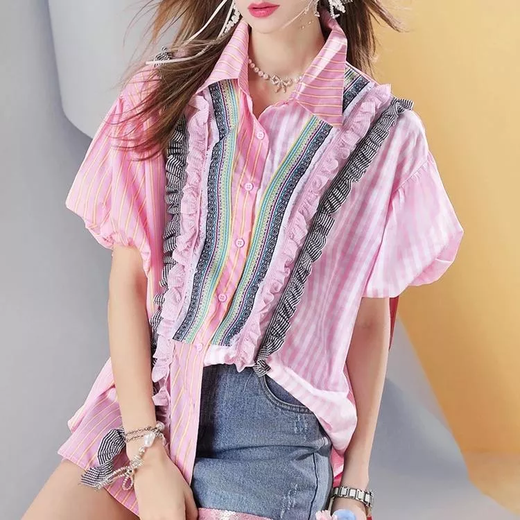 Turn heads and elevate your casual streetwear style with this eye-catching Women’s Striped Patchwork Blouse. Designed for those who crave individuality and comfort, this mid-length button-down shirt is the perfect blend of laid-back charm and statement fashion. Featuring a playful mix of stripes and plaid patterns, soft ruffles, and voluminous puff sleeves, it delivers a unique silhouette that feels as good as it looks.