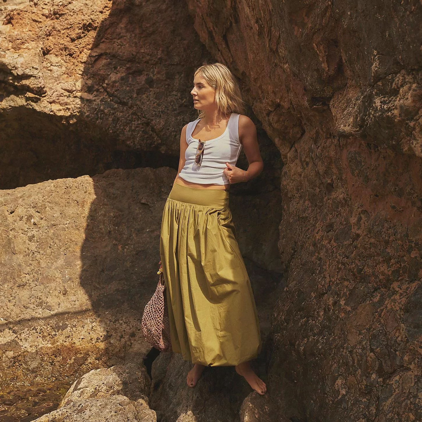 Step into a world of vintage charm and streetwear sass with this eye-catching Y2K Bubble Maxi Skirt. Designed for women who love a playful twist on feminine style, this skirt blends summer fairytale vibes with bold streetwear attitude. The high waist and puffed pleated hem create a dramatic A-line silhouette that flatters and flows, making you feel confident, stylish, and effortlessly chic.